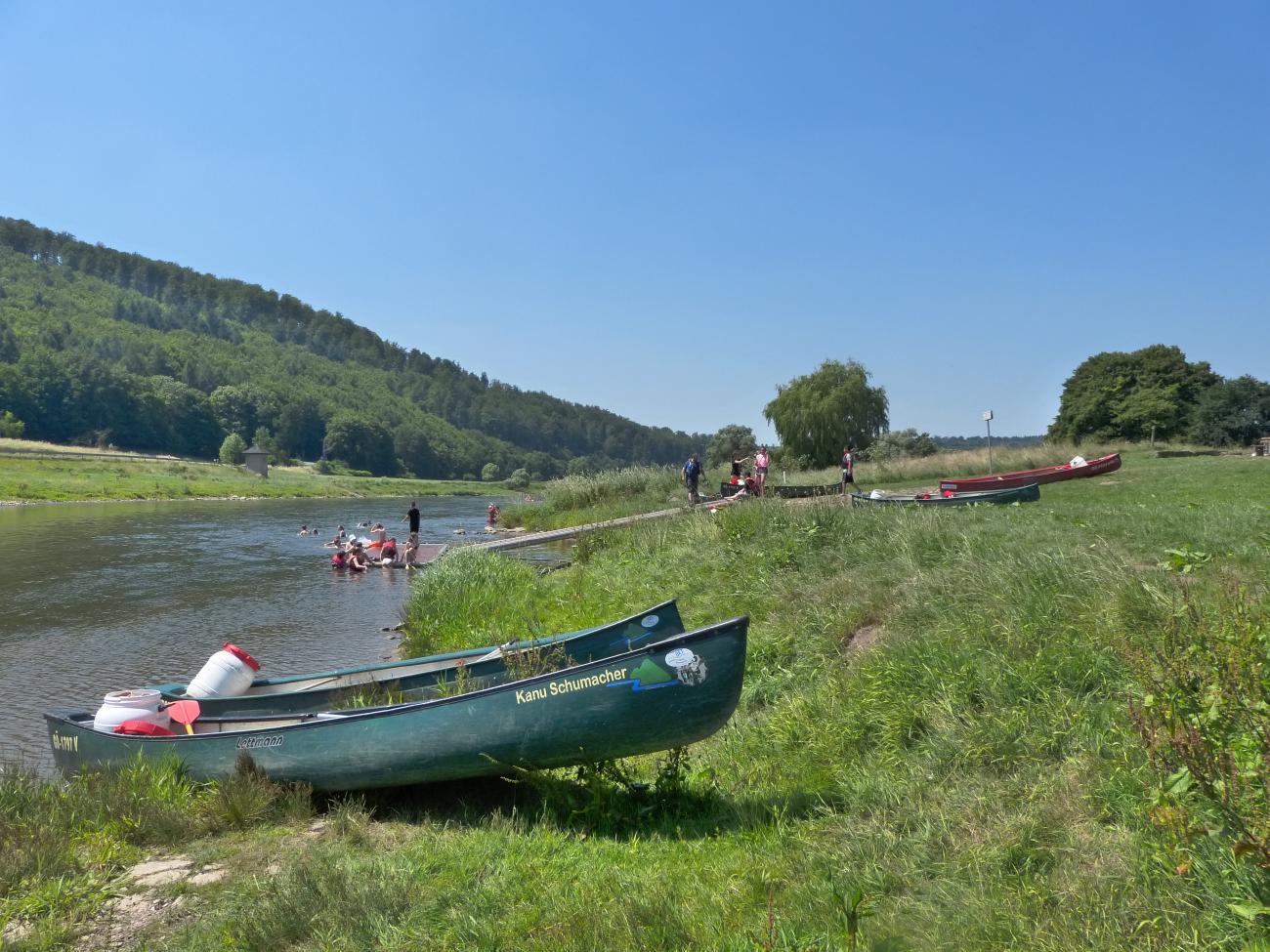 Vorbei geht die Fahrt an der auf den schroffen Hannoverschen Klippen thronenden Aussichtsplattform „Weser-Skywalk“ und gemütlichen Städten und Dörfern. Unterwegs bieten Cafés und alte Fährhäuser die Möglichkeit einzukehren. Auf Ihrer Fahrt begegnen Ihnen traumhafte Aussichten: Die sanften Hügelketten stellen die Schönheit des Sollings zur Schau. Sie passieren die Ortschaften Herstelle und Würgassen und schließlich, nach ca. 1 ½ Stunden Paddelzeit, die Stadt Beverungen in Nordrhein-Westfalen. An dieser Stelle könnten Sie eine Pause am Flussufer einlegen, nach Belieben auch einkehren. Nach etwa einer weiteren Paddelstunde erreichen Sie Wehrden.